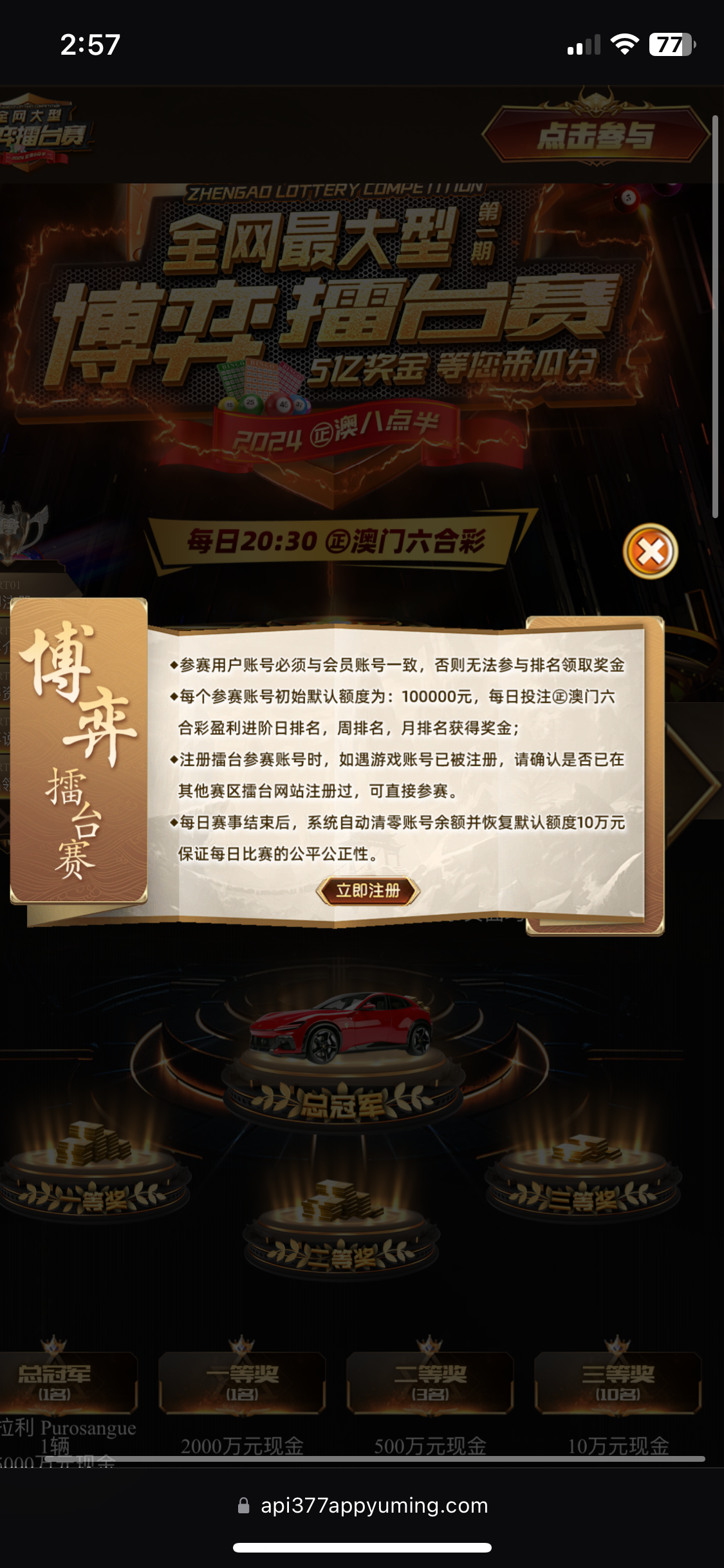 正澳门比赛平台注册参加,十万额度,第一名法拉利