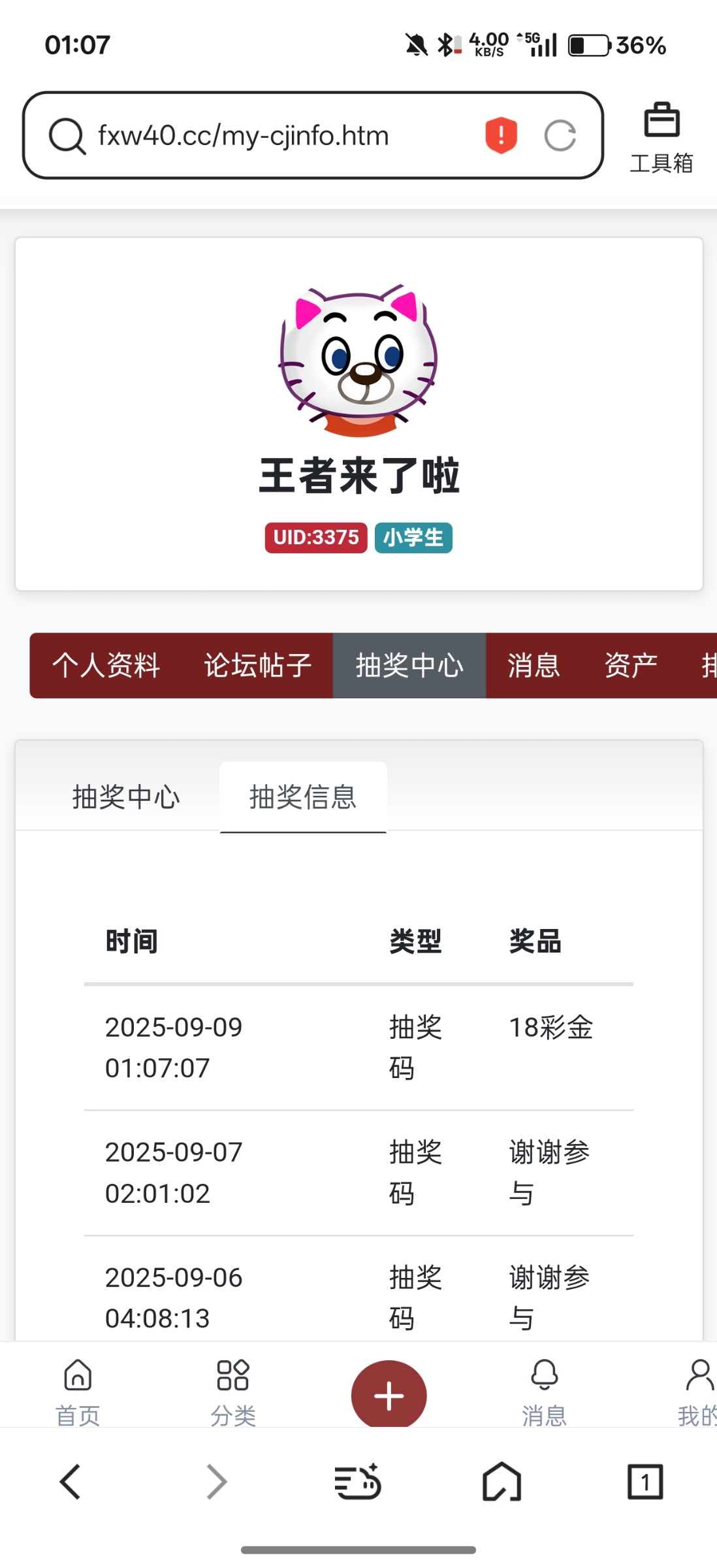 发截图了,中奖了,没收到1888金币