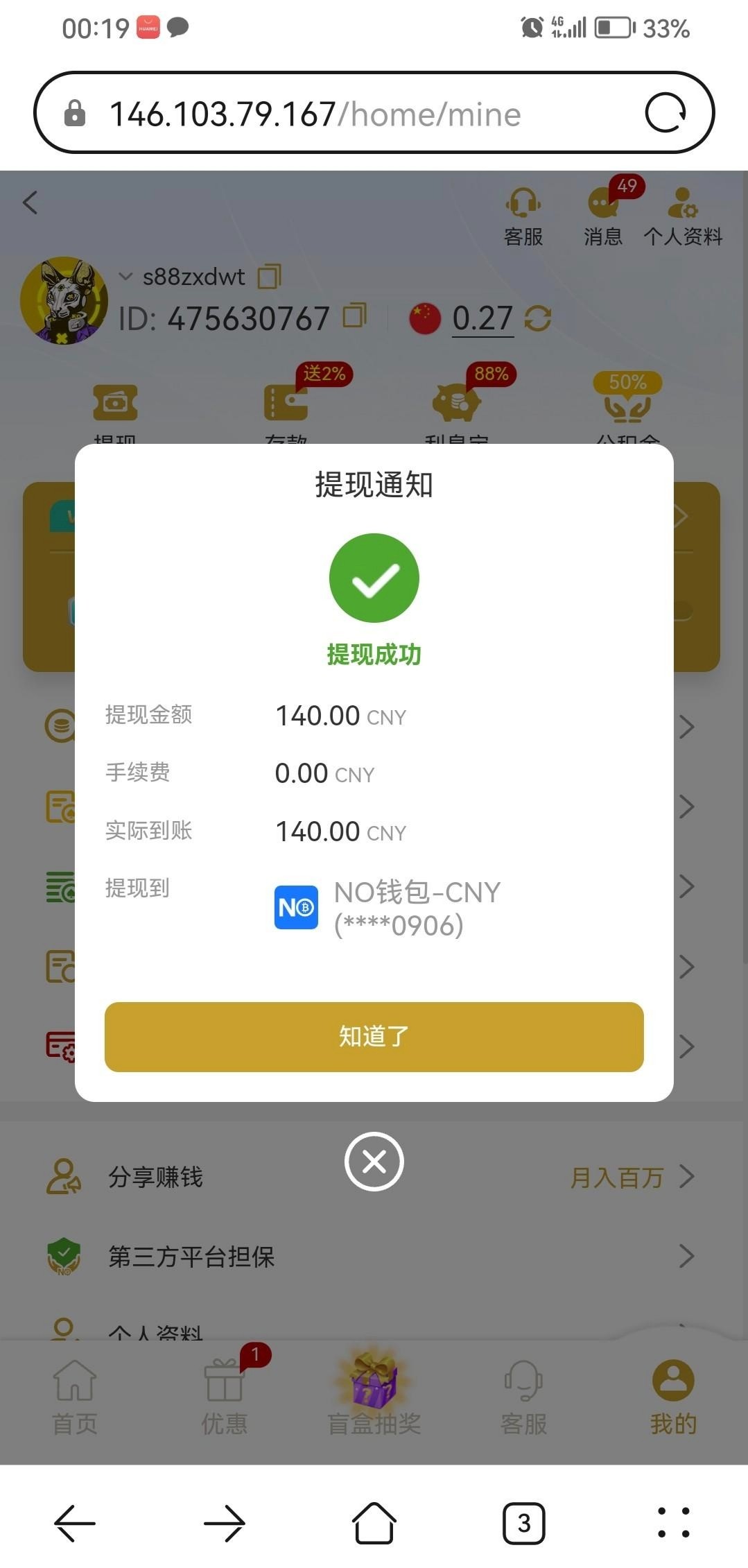 注册未充值领取过一个8,今天看到别人发的登陆有8和18不等的彩金,自己登上去送了28,提现140秒到,有号的登上去看下,没有无视就可以 378.com