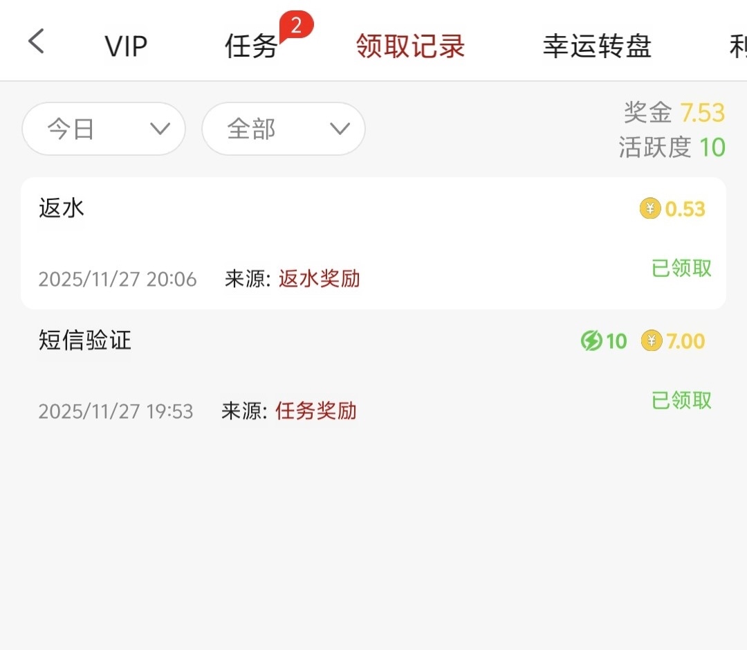 注册完成验证送7