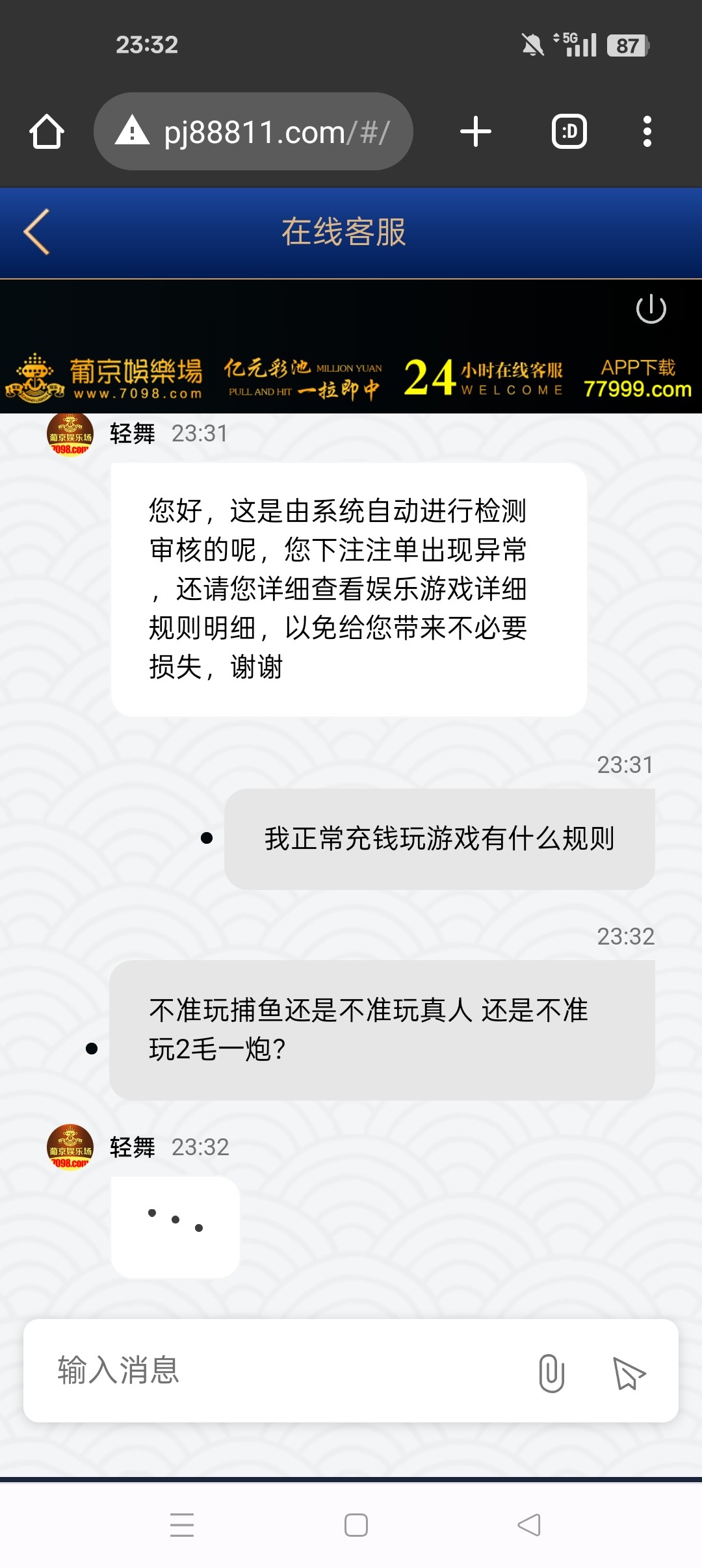 第二次输100 第三次充低100提200正常了第四次充100打鱼开0.2自动提200块又说我异常