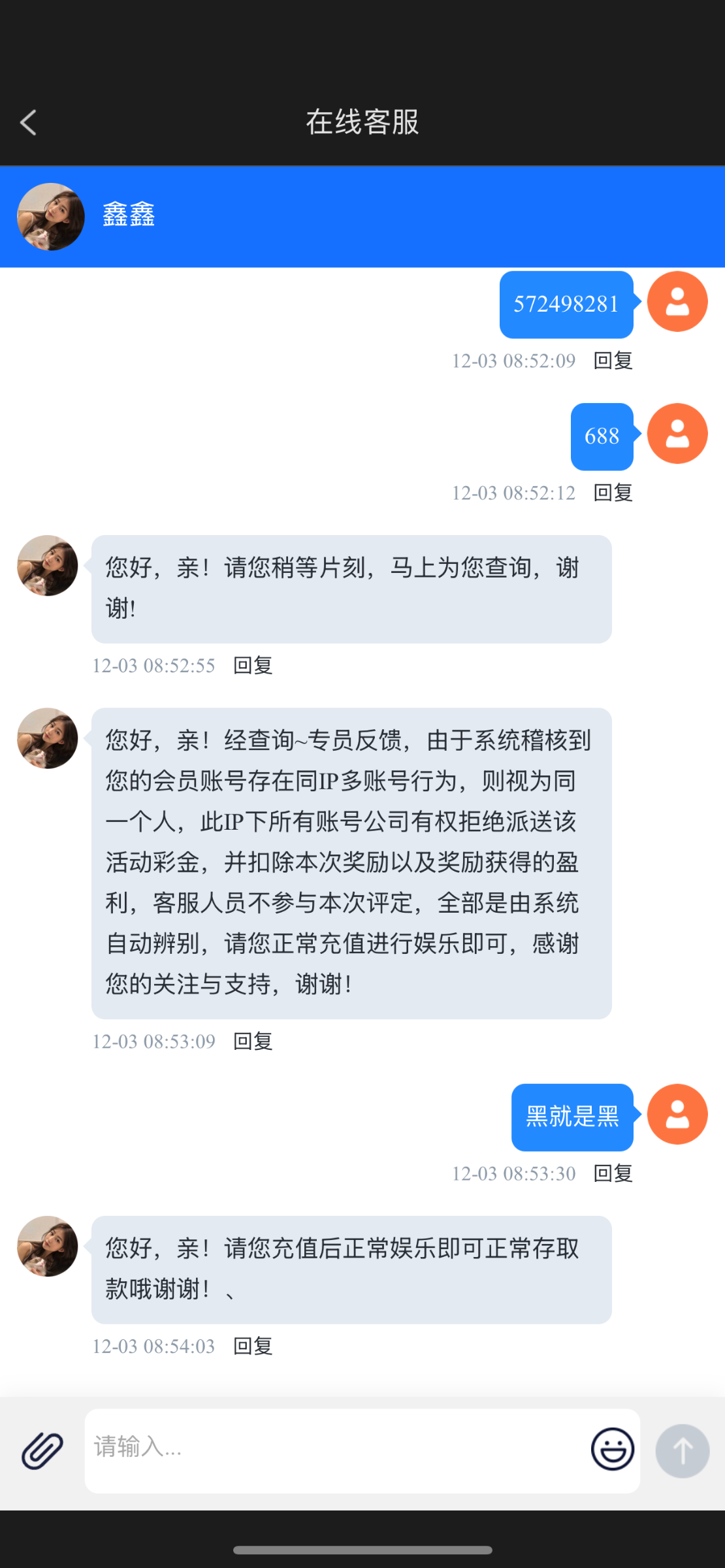 第一次充值100打到了500提现到账,然后又充值50打到了900客服让我打900的5杯水,5杯打到了,提现客服又说让我24小时保持账号活跃,我今天又打目前打到了3000+明天再提试试 顺便问问有人收黑分不?