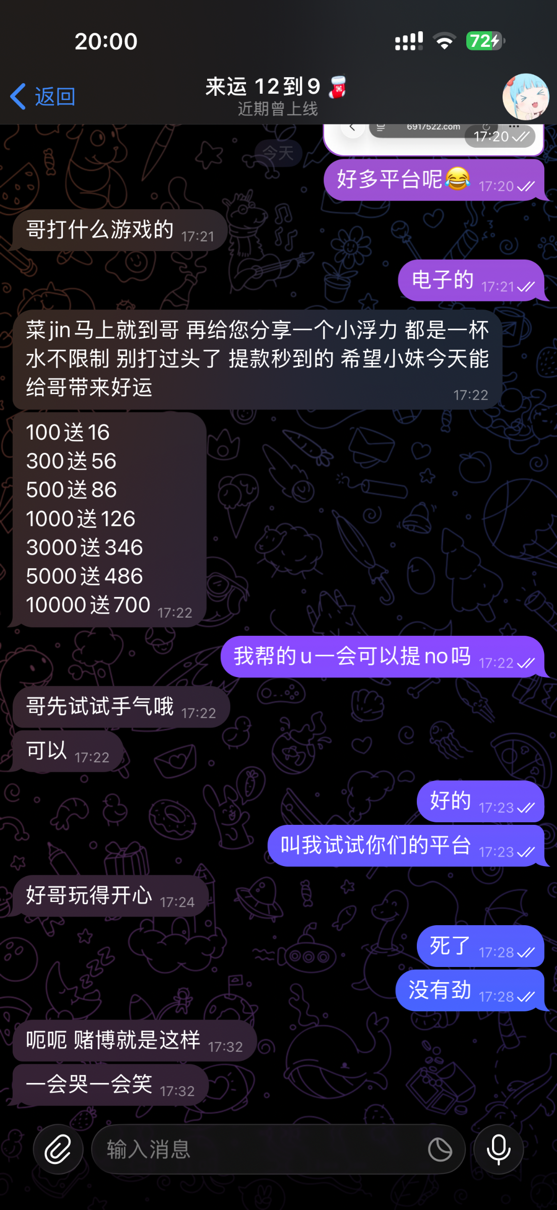 我送了288老号打电话来送的没打出来一点水没有,这破台子之前输了十多个