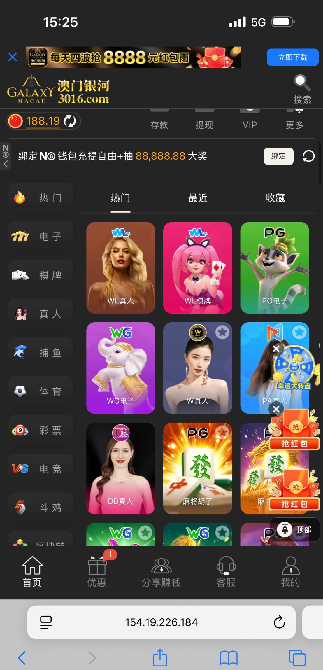 银河3016收到短信领188
