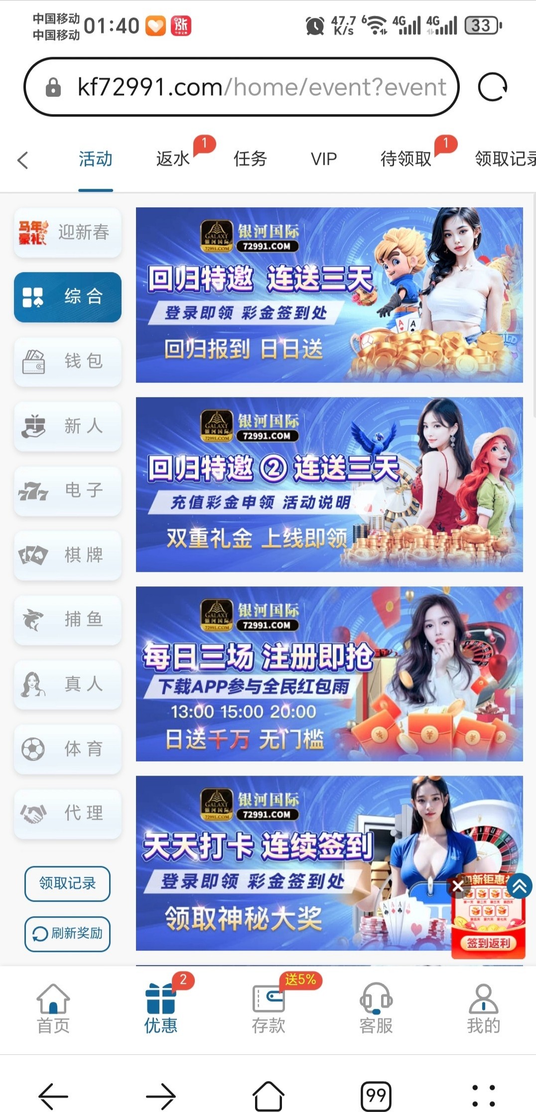 前两天电话回归彩金 联系三天每天能领6,我两个号都领了链接72991.com