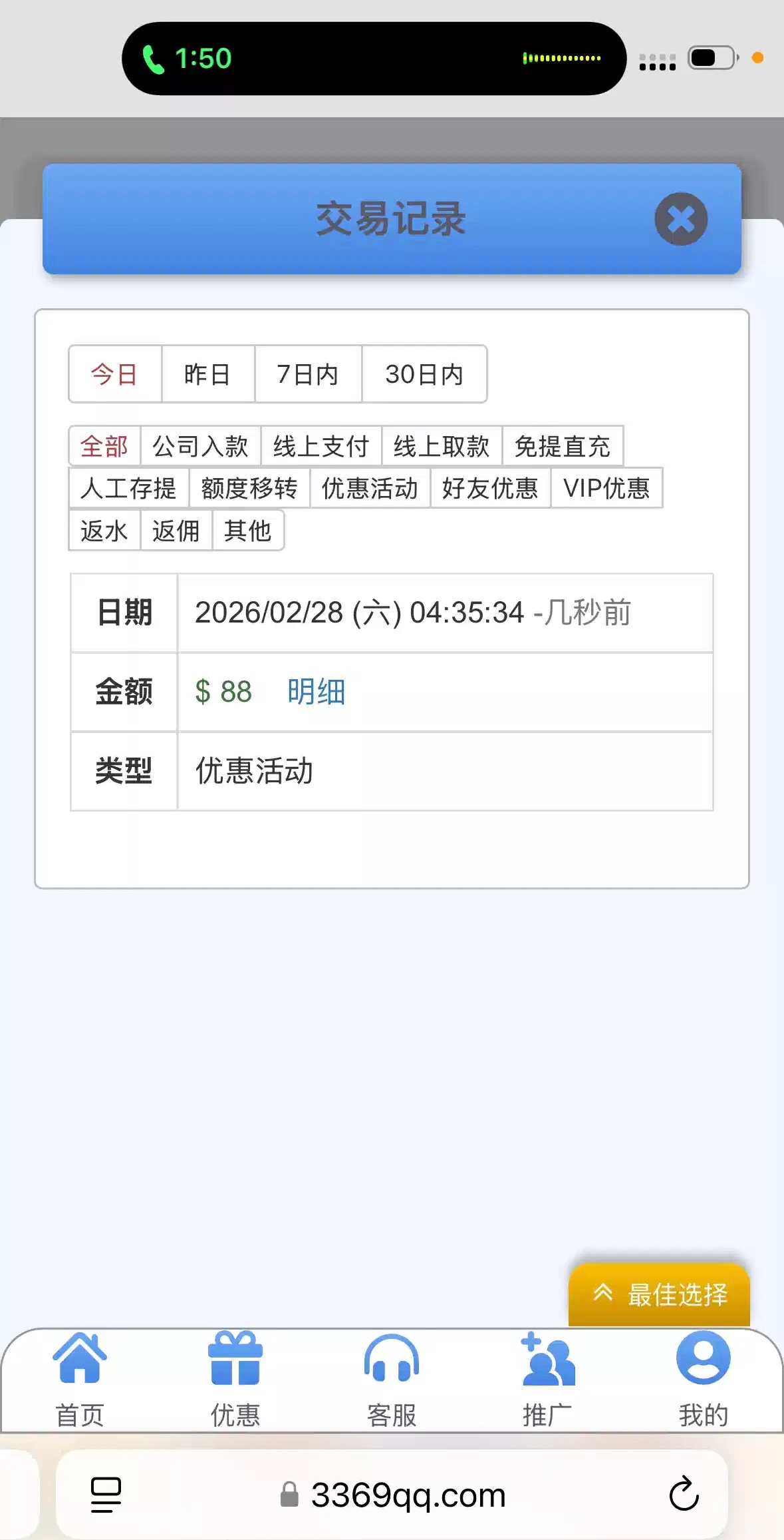 接到电话回访弹窗领取,另一个号没接到电话登陆也弹窗了,网址3369.com