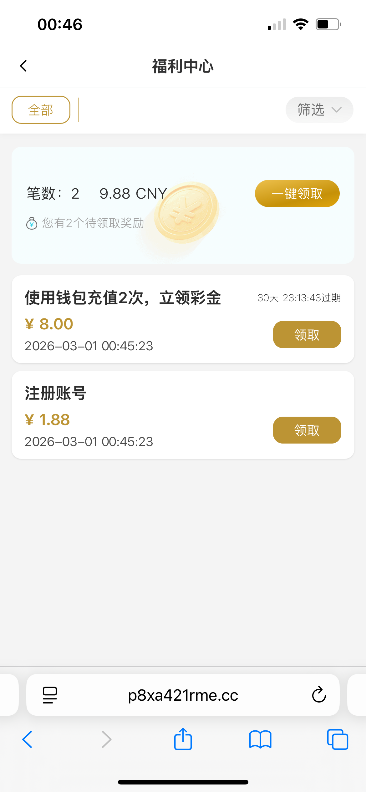 注册就有点我的优惠里面自助领取